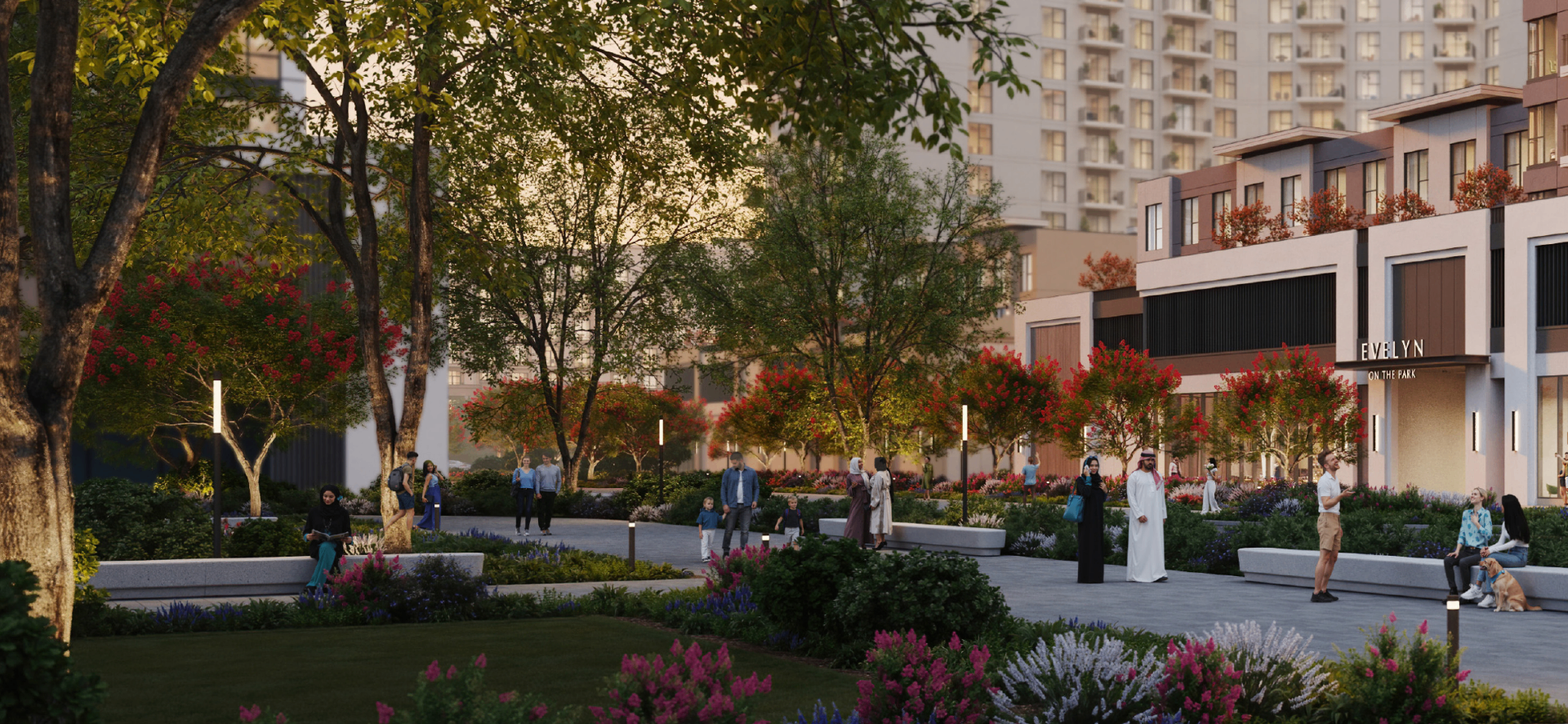 Just a short walk from the Main Park, this new extension of Town Square invites residents to embrace a lifestyle closely connected to nature. A lush green park framed by residential buildings and convenient retail.
